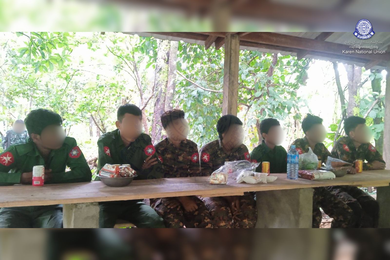 Photo – ကရင်အမျိုးသားလွတ်မြောက်ရေးတပ်မတော် (K.N.L.A) တပ်ရင်း (၉) ထံသို့ အလင်းဝင် ဘက် ပြောင်းခိုလှုံလာသော ပြည်သူ့စစ်မှုထမ်းတပ်သား ၇ ဦး။