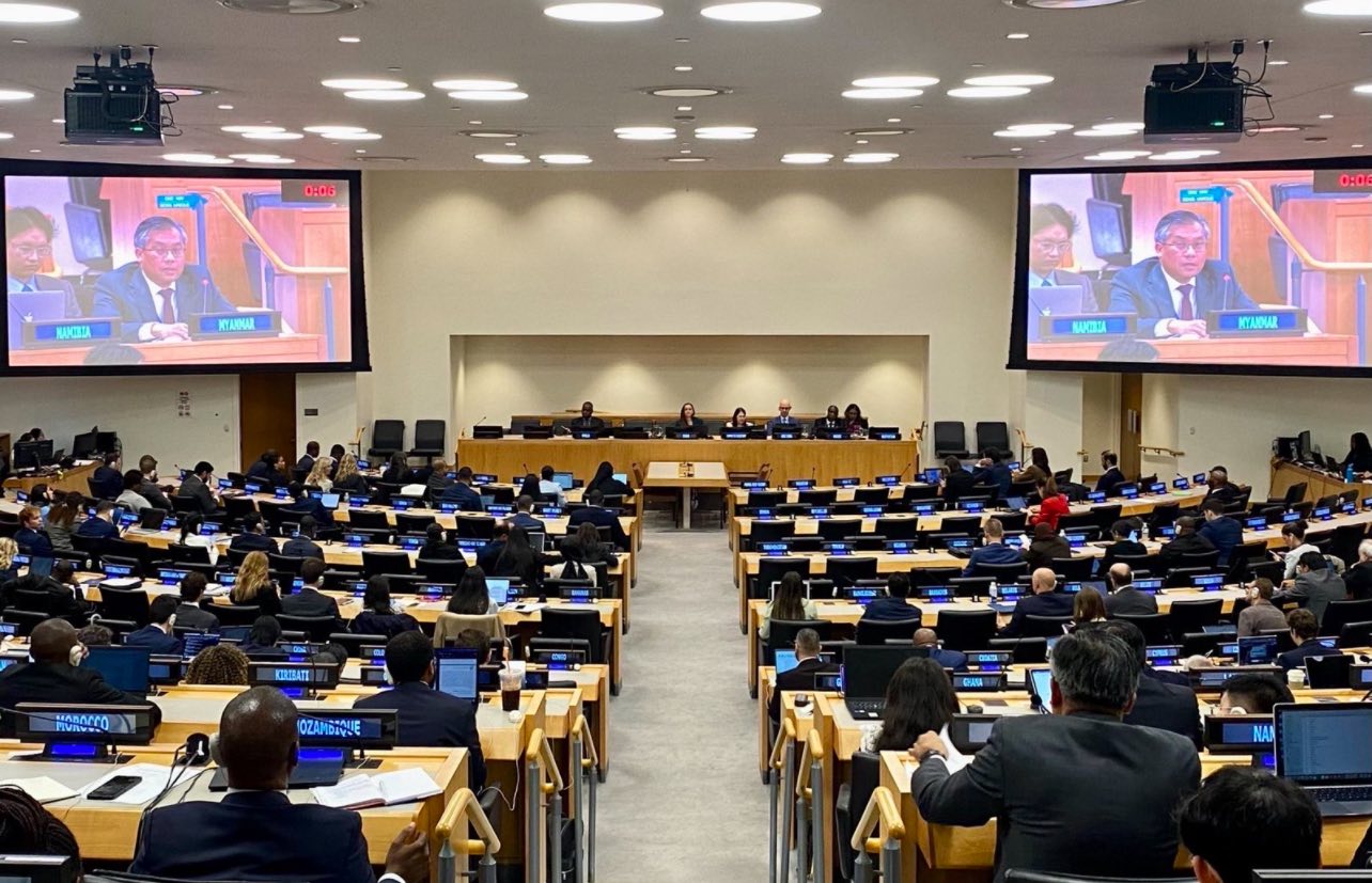 အောက်တိုဘာလ ၈ ရက်နေ့က နယူးယောက်မြို့ရှိ ကုလသမဂ္ဂရုံးချုပ်၌ ကျင်းပခဲ့သော အကြိမ် (၈၀) မြောက် ကုလသမဂ္ဂအထွေထွေညီလာခံ၊ စီးပွားရေးနှင့် ဘဏ္ဍာရေးဆိုင်ရာကော်မတီ (ဒုတိယကော် မတီ) ၏ ဆွေးနွေးမှုအစီအစဉ်အမှတ် ၂၁၊ “အထူးအခြေအနေများ၌ ရှိနေသည့် နိုင်ငံများအုပ်စု” ခေါင်း စဉ်ဖြင့် အထွေထွေဆွေးနွေးမှုအစီအစဉ် (General Discussion) တွင် ၎င်းက ထည့်သွင်း ပြောကြားခဲ့ခြင်းဖြစ်သည်။
