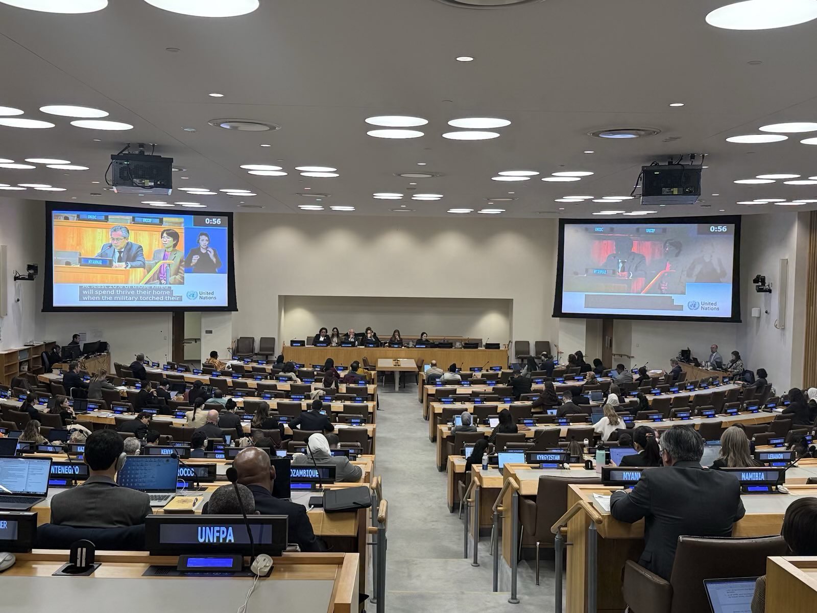 အောက်တိုဘာလ ၂၃ ရက် မွန်းလွဲပိုင်းက နယူးယောက်မြို့၊ ကုလသမဂ္ဂဌာနချုပ်တွင် ကျင်းပသော ကုလသမဂ္ဂ လူမှုရေး၊ လူသားချင်းစာနာထောက်ထားမှုနှင့်ယဉ်ကျေးမှု ရေးရာကော်မတီ (တတိယ ကော်မတီ) တွင် မသန်စွမ်းသူများ၏ အခွင့်အရေးများ (Rights of Persons with Disabilities) ခေါင်း စဉ်ဖြင့် အပြန်အလှန် ဆွေးနွေးပြောကြားမှုအစီအစဉ်တွင် ၎င်းက ထည့်သွင်းပြောကြားခဲ့ခြင်း ဖြစ်သည်။