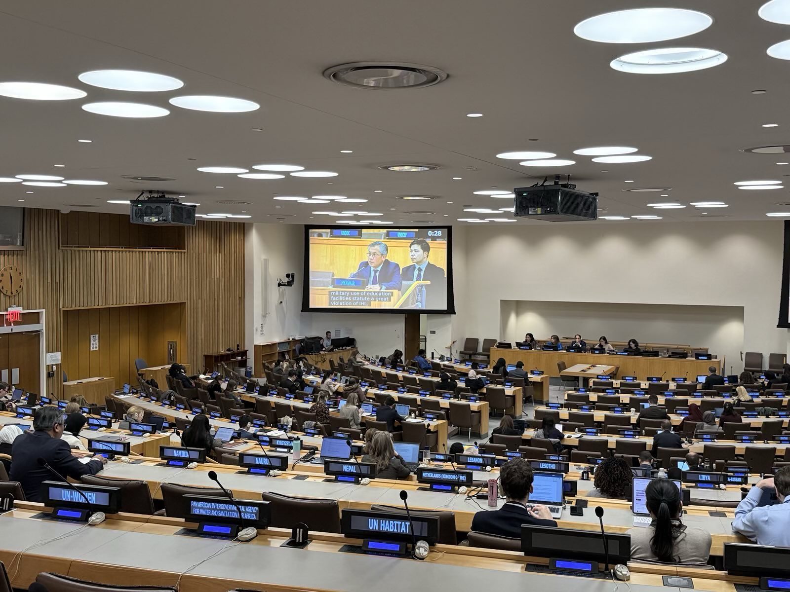 အောက်တိုဘာလ ၂၄ ရက် နံနက်ပိုင်းက နယူးယောက်မြို့၊ ကုလသမဂ္ဂဌာနချုပ်တွင် ကျင်းပသည့် ကုလသမဂ္ဂ လူမှုရေး၊ လူသားချင်းစာနာထောက်ထားမှုနှင့် ယဉ်ကျေးမှုရေးရာကော်မတီ (တတိယ ကော်မတီ) တွင် ပညာသင်ကြားခွင့် (Right to Education) ခေါင်းစဉ်ဖြင့် အပြန်အလှန် ဆွေးနွေး ပြောကြားမှု အစီအစဉ်တွင် ၎င်းက ထည့်သွင်းပြောကြားခဲ့ခြင်းဖြစ်သည်။