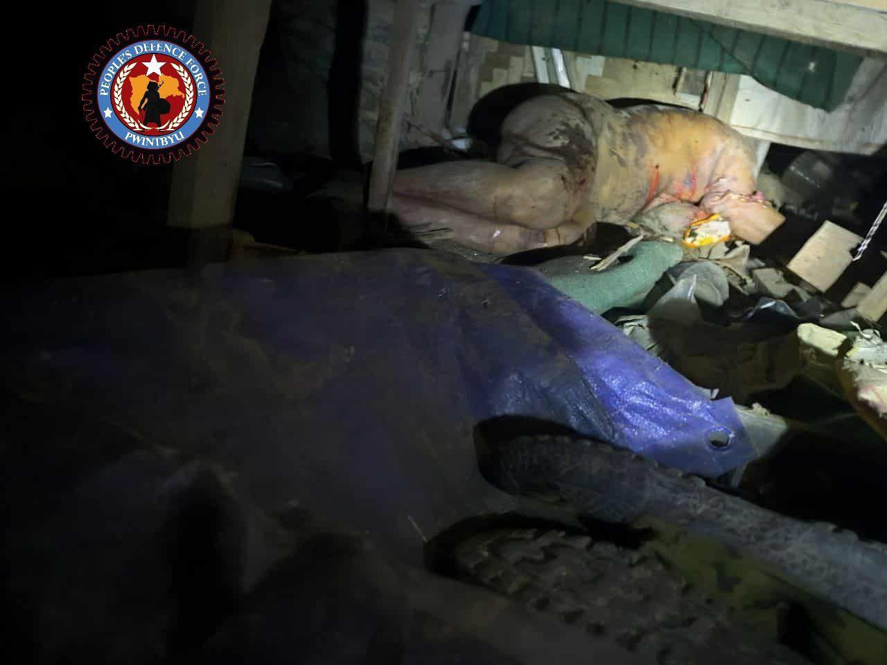 ပွင့်ဖြူမြို့နယ်၊ ပုသိမ် -မုံရွာလမ်းပေါ်ရှိ စစ်တပ်စစ်ဆေးရေးဂိတ်ကို ဝင်ရောက်တိုက်ခိုက်သိမ်းပိုက်မှု စစ်သား အလောင်း ၄ လောင်းနှင့် လက်နက် ၆ သိမ်းဆည်းရရှိ