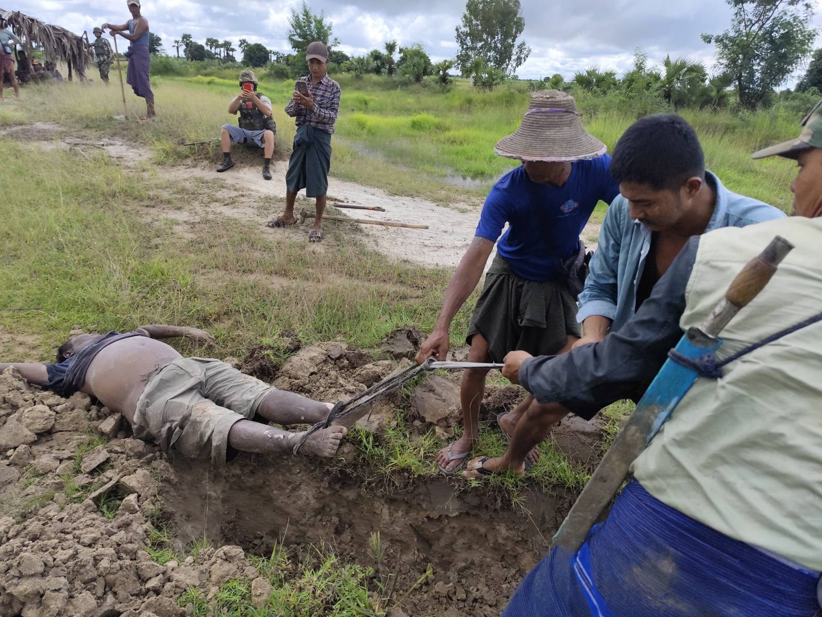 “၂၃ ရက်နေ့က နယ်မြေရှင်းလင်းရေးလုပ်ခဲ့တာပါ၊ ရှင်းလင်းရေးလုပ်တဲ့အချိန်မှာ စစ်သုံးပစ္စည်းအချို့ သိမ်းဆည်းရရှိခဲ့ပါသေးတယ်။ အဖွဲ့ပေါင်းစုံနဲ့ ရှင်းလင်းရေးလုပ်တာဖြစ်တဲ့အတွက် အချို့သော အ လောင်းတွေက မှတ်တမ်းမရဘူး။ ကျနော်တို့ရှင်းလင်းရေးလုပ်တာကလည်း ကျနော်တို့ရဲ့ နယ်မြေ အတွင်းမှာပဲ ရှင်းလင်းရေးလုပ်လိုက်တာ၊ အခုအလောင်းတွေက ကိုယ့်နယ်မြေအတွင်းမှာပဲရှိတဲ့ အ လောင်းတွေဖြစ်ပါတယ်၊ စခသေစာရင်းက အလွတ်သဘောပြောမယ်ဆိုရင် ၁၀ ဦးလို့လည်း ပြော ရတယ်၊ ၃၀ လို့လည်းပြောရတယ်၊ ၅၀ လို့လည်းပြောရတယ်။ စစ်ကြောင်းပါ ပျက်သွားတာ၊ အရေ အတိအကျပြောမရတာ၊ ကျနော်ရတဲ့အလောင်းတင်မကပဲနဲ့ တခြားနေရာတွေမှာလည်း ရှိနိုင်သေး တယ်၊ အများလုပ်ကြတာဖြစ်တာဖြစ်တဲ့အတွက် တိတိကျကျ မရေတွက်နိုင်ဘူး။ ဗိုလ်ကြီးကတော့ မင်းလို့ခေါ်တယ်၊ ဒုဗိုလ်မှူးကြီးကတော့ နာမည်တော့ မသိဘူး။ အလောင်းကတော့ ကောင်းကောင်း သိတယ်။ အလောင်းအားလုံးကို အင်အားစုတွေပူးပေါင်းပြီး မြေမြှုပ်ပြီးသင်္ဂြိုလ်ပေးလိုက်တာပါ။” ဟု ခင်ဦးမြို့နယ်ပြည်သူ့ကာကွယ်ရေးတပ်ဖွဲ့မှ တာဝန်ရှိသူတစ်ဦးက ပြောကြားသည်။